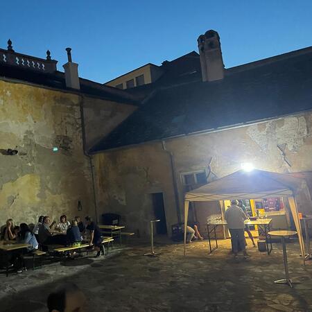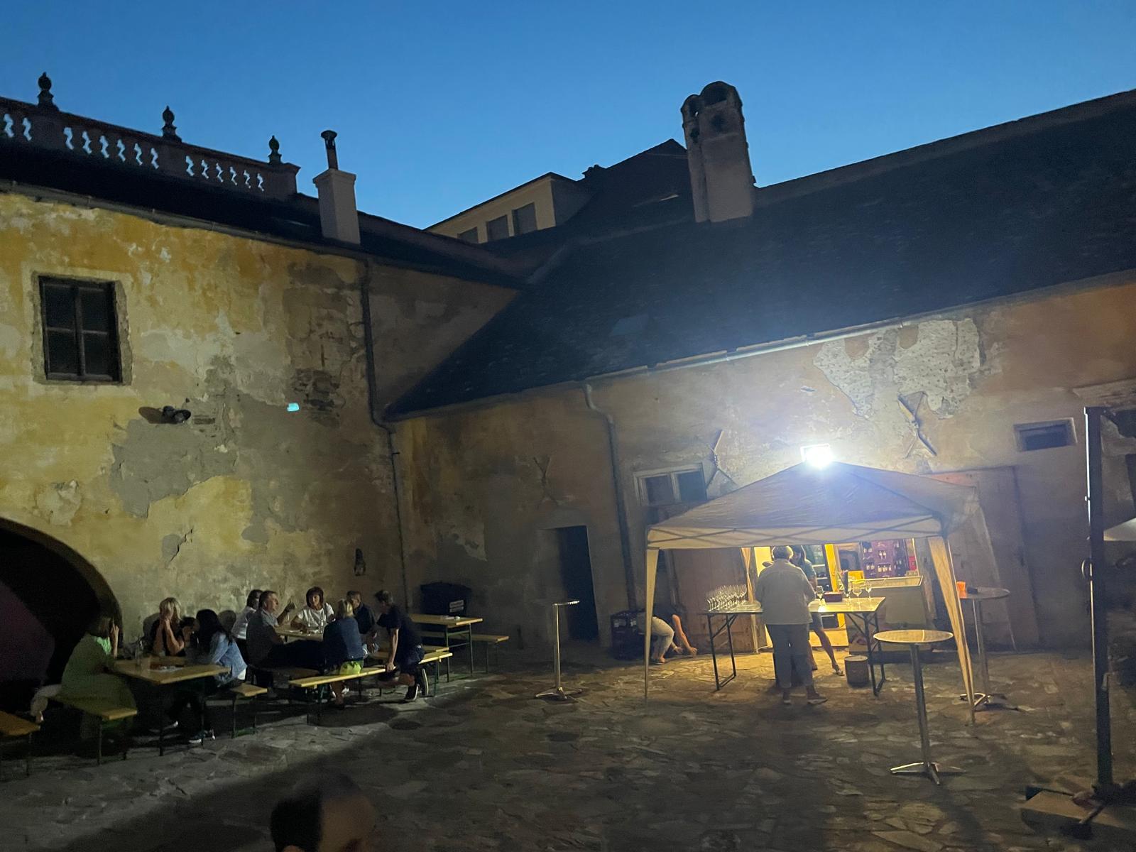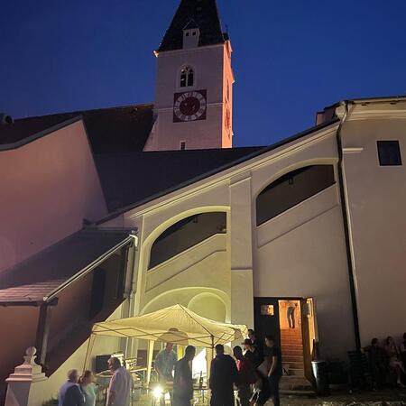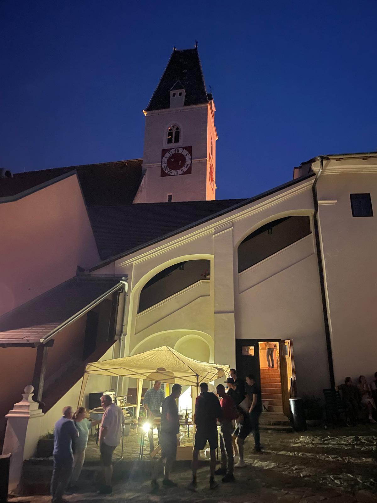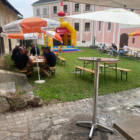 Etwas abseits vom Geschehen im schönen Ambiente des Hofes des Pfarrhofes wurden hervorragende Pizzen frisch aufgebacken und Wachauer Weine zum Verkauf angeboten. Die Kinder, für die eine „Hüpfkirche“ aufgebaut war, konnten sich nach den anstrengenden sportlichen Hüpf-Einsätzen an Säften wieder erfrischen.